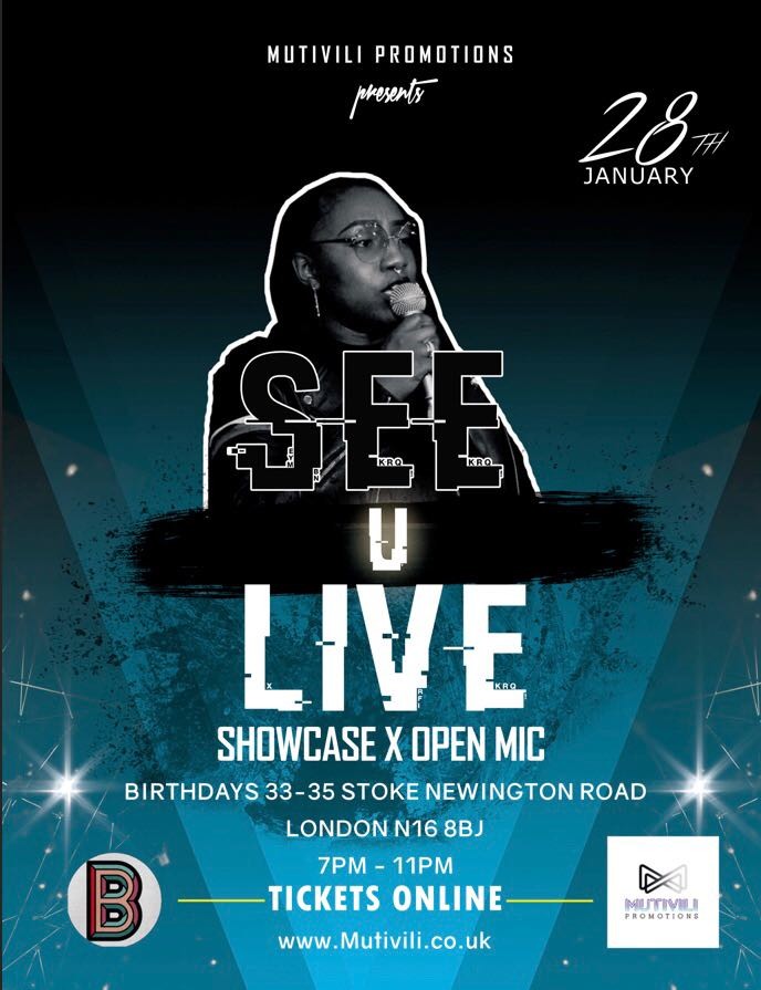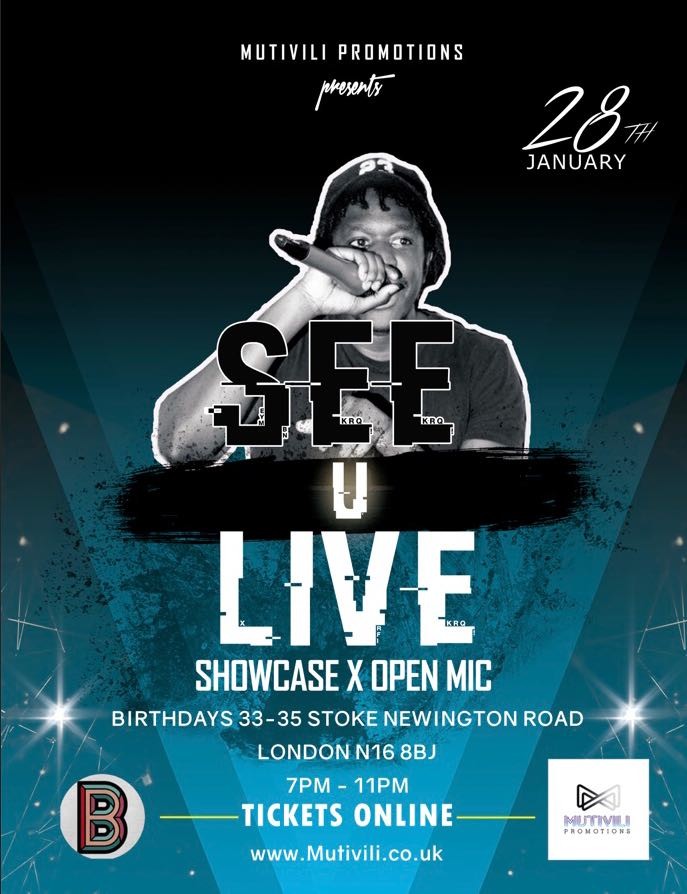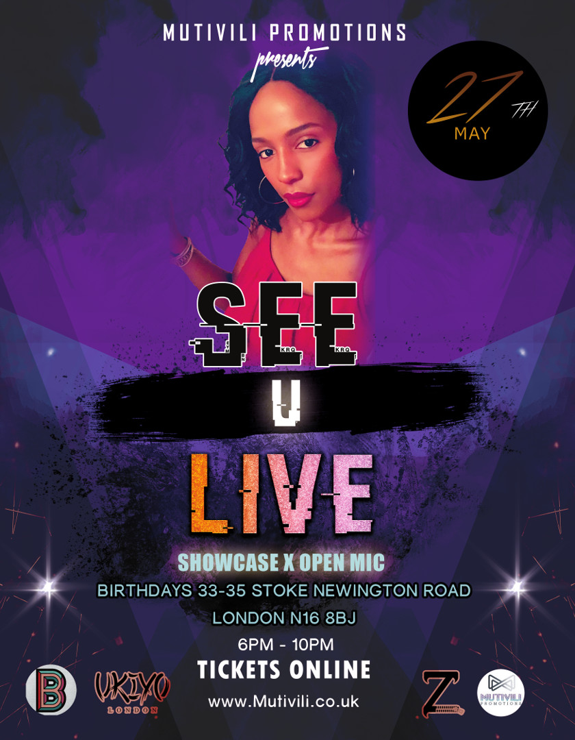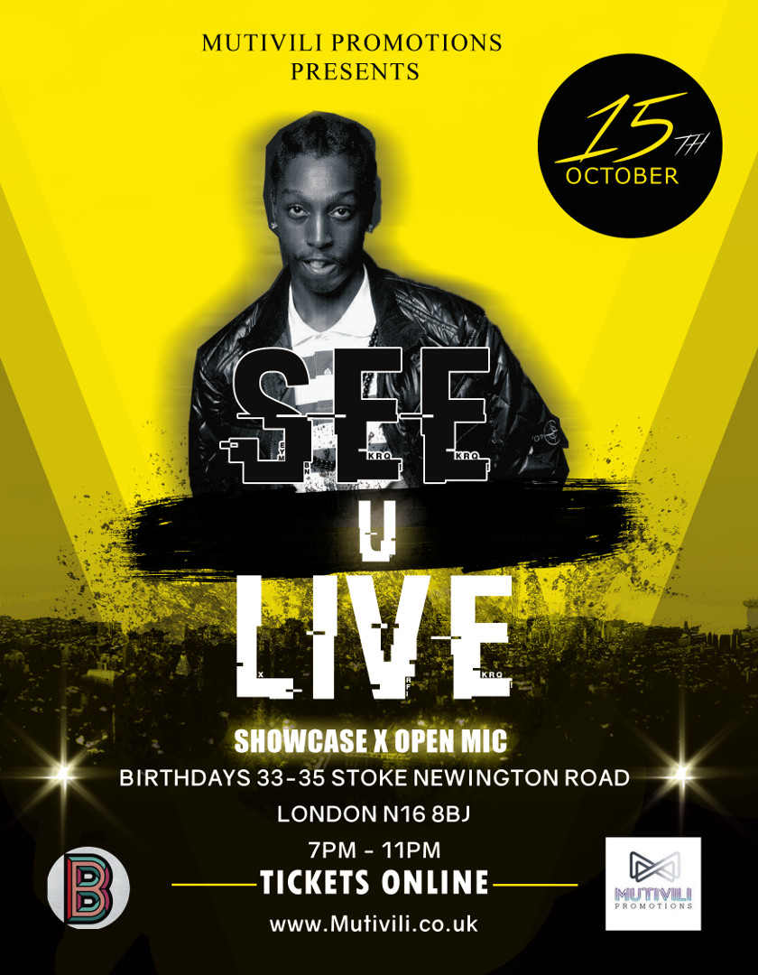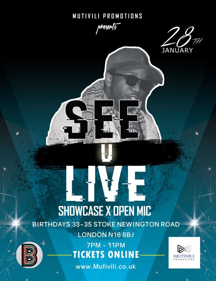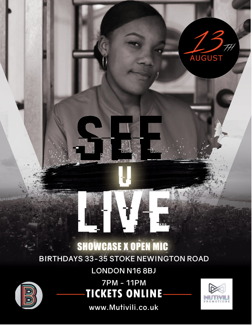 SEE U LIVE SHOWCASE IS BACK!!! We return to Birthdays Dalston this October with another superpowered lineup. Performances by: Juelz Dirty Daps Patrin Tee the Singer Justo Kenzo Dthrills ...