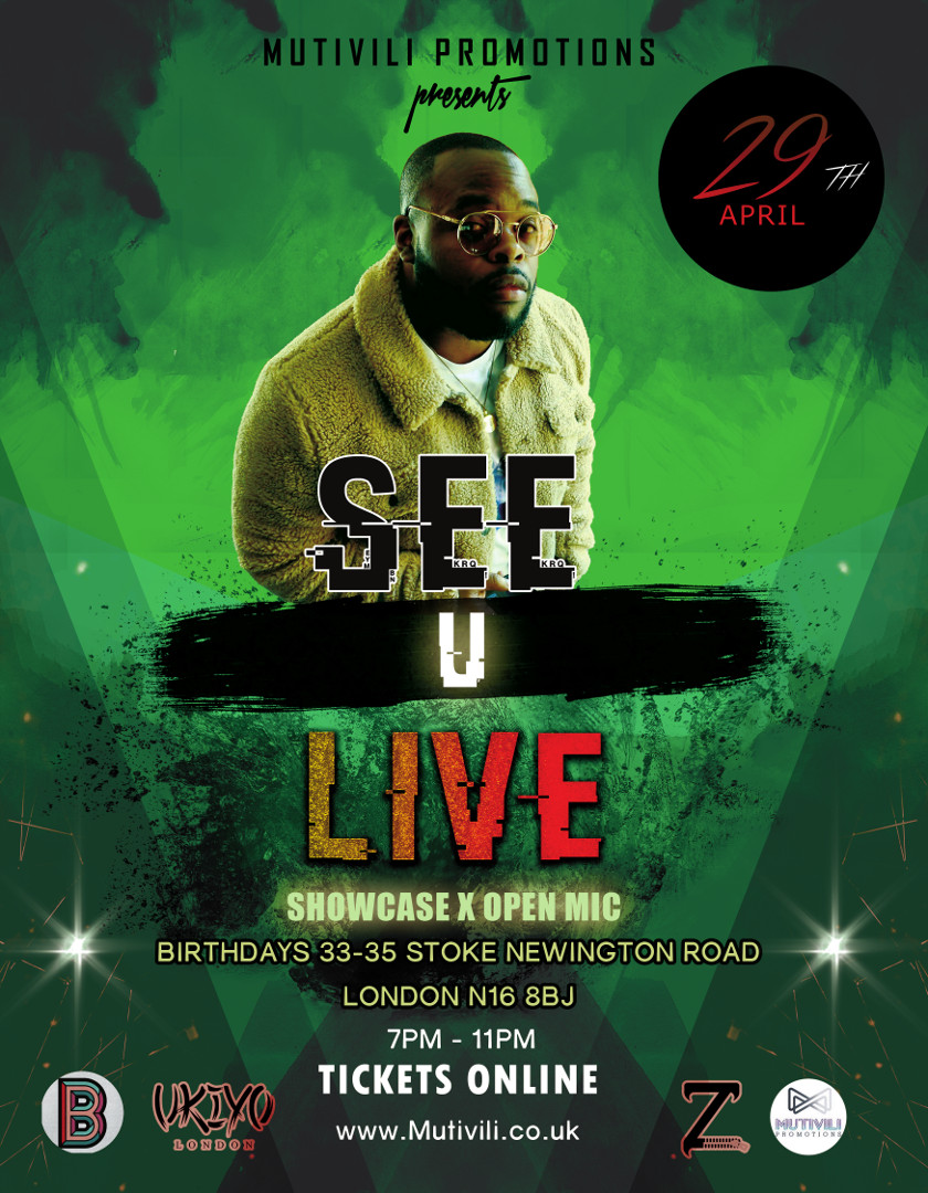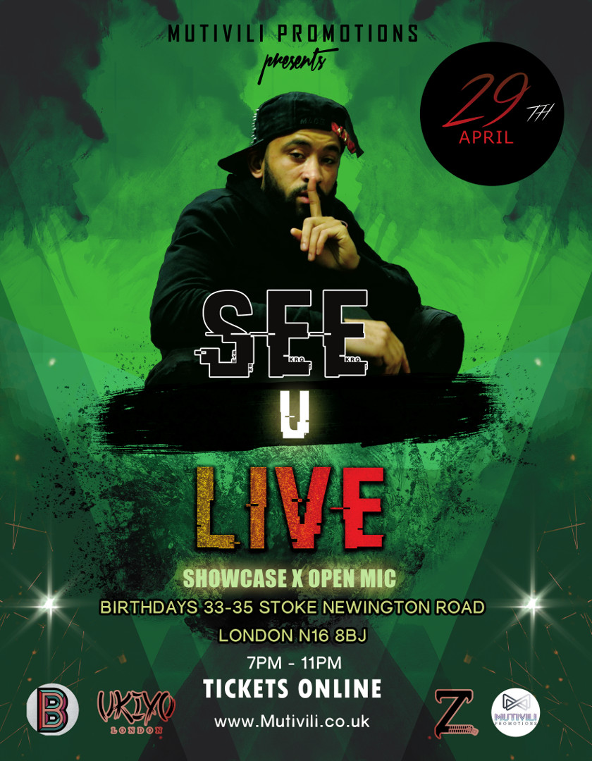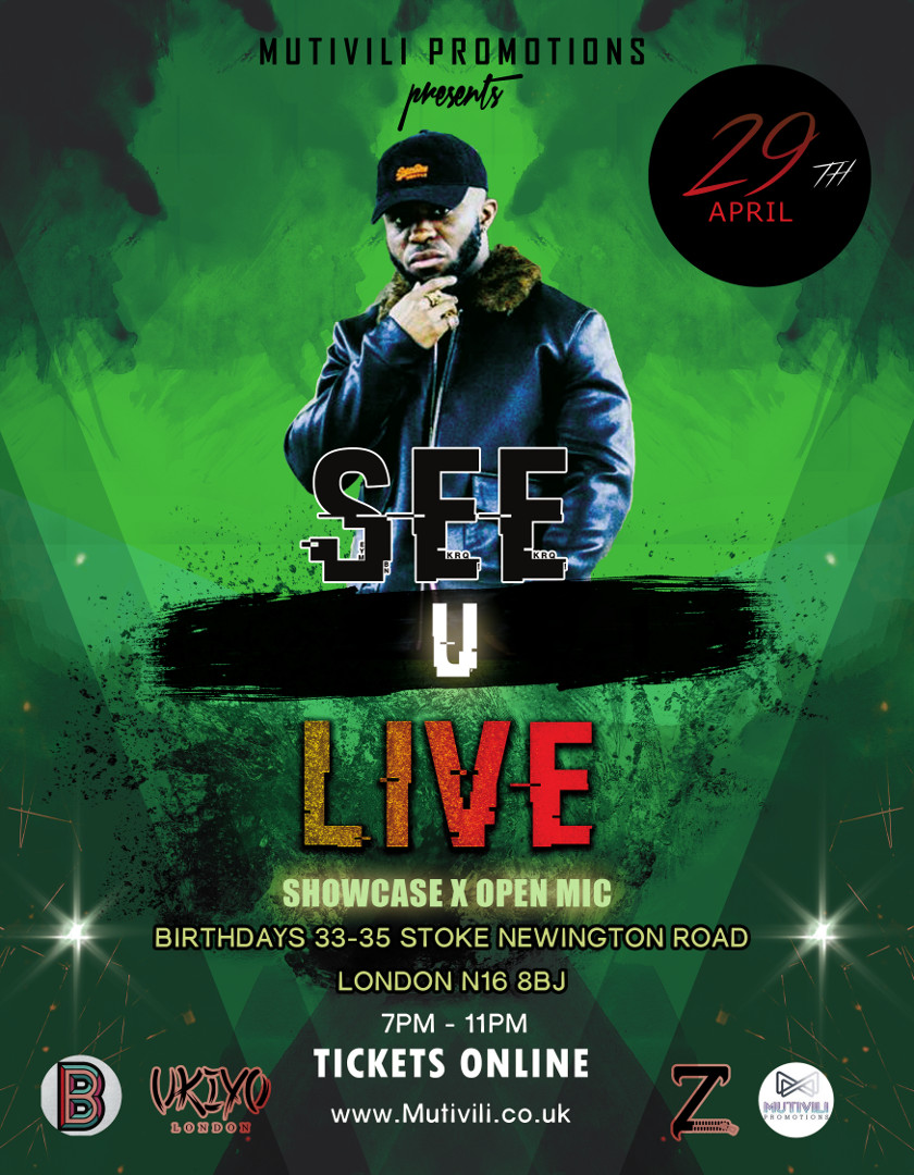 SEE U LIVE SHOWCASE APRIL EDITION!!! We will be kicking off the start of spring with UK Afrobeats legend & pioneer Mista Silva In addition we have performances from the finest up and coming...