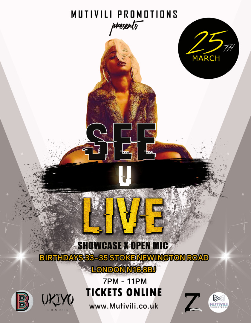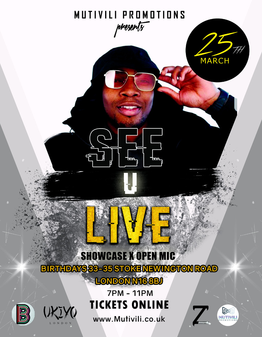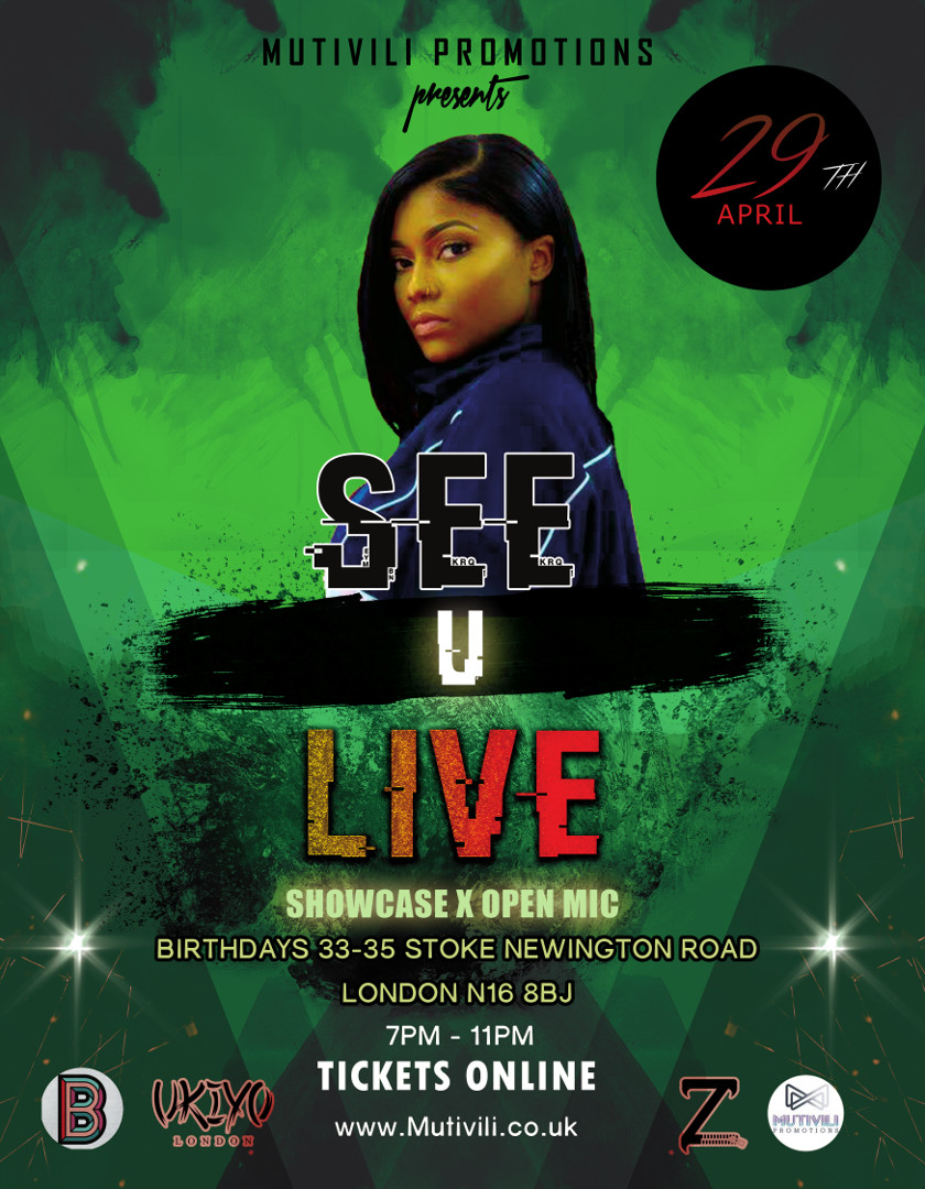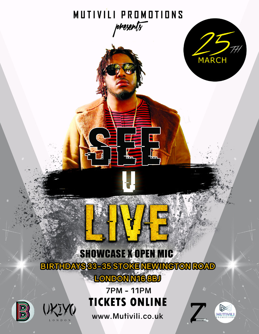 SEE U LIVE SHOWCASE APRIL EDITION!!! We will be kicking off the start of spring with UK Afrobeats legend & pioneer Mista Silva In addition we have performances from the finest up and coming...